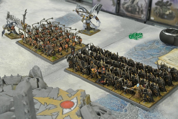 ストレインガイダンスは宙を舞いながら軍勢を指揮するだけで、直接戦線に加わる気配を見せない。トゥルクコォルはストレインガイダンス討伐を一旦諦め、敵正面のケイオスウォーリアーを粉砕するべくテンプルガードとエンシェントステガドンに号令を下し、トゥームガードと共にケイオスウォーリアーへ迫った。