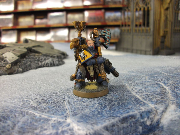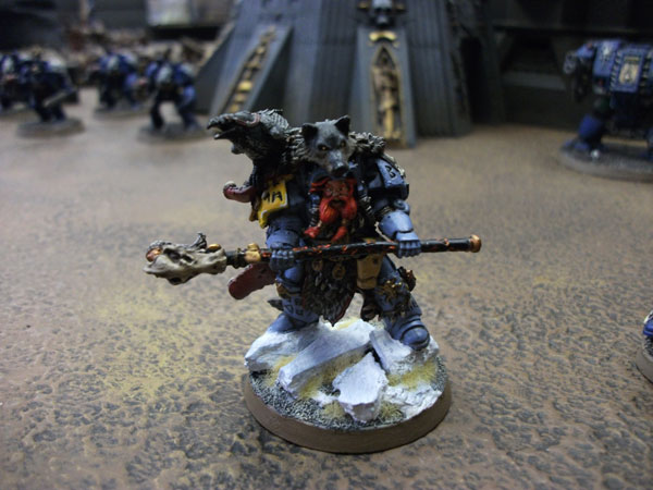 ンジャル・ストームコーラー大先生。40kで新しいスペースウルフがリリースされた時、無茶苦茶格好いいオッサンが登場したなーとFBをやりながら見ていたもので、スペースウルフを始めるなら是非彼を迎えねば!と作りました。