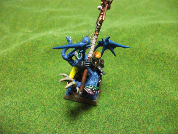 その証拠、カーヴシンク第2形態。前回ここに載せた後、「あまりレベル4ウィザードっぽくないな・・・」と思い、ケイオススポーンのビッツパーツを使い、グリーンスタッフをこねくり回し、強化しました。イメージとしては、ケイオスアーマーを突き破って、本体であるディーモンプリンスが出てきた感じ。