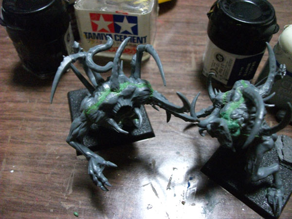 ケイオススポーンの組み立ては単純明快。好きな所に好きなパーツを差し込め。この適当な感じが気に入った。ちょっとパーツの接合面に隙間が空くことが気になったので、グリーンスタッフで隙間を埋めております。