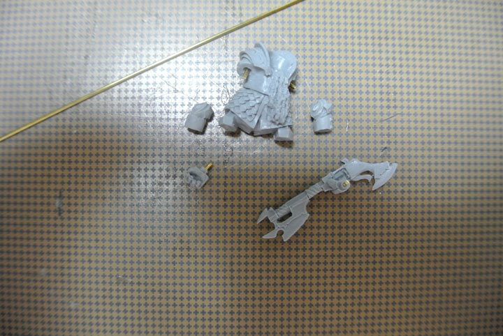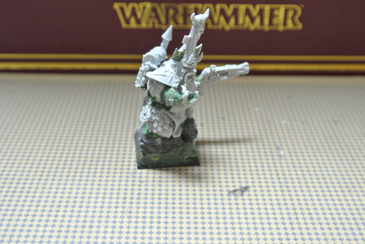 なので、基本は元ミニチュアそのまま。唯一の変更点は、持っていた得物をハンマーからインフェルナルガードのチャンピオンが持っていたピストルにしたこと。背負ってるものが非常にメカメカしいので、こっちの方が似合うかなと考えての変更です。