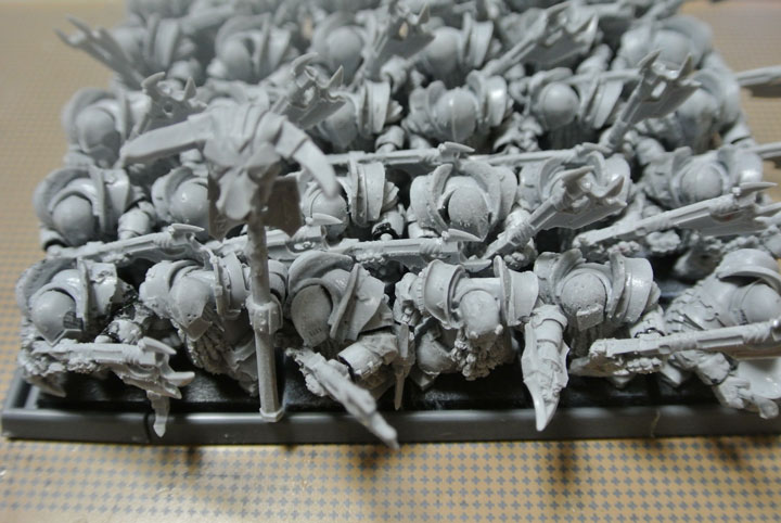 なんとか30体分完成。しかし画像をよく見ると、瞬間接着剤によるヒケが出来ている。細かい物は見なかったことにして、やばそうな物をサンドペーパーでゴリゴリ。しかしその数実に10数体。心が折れそうになる。