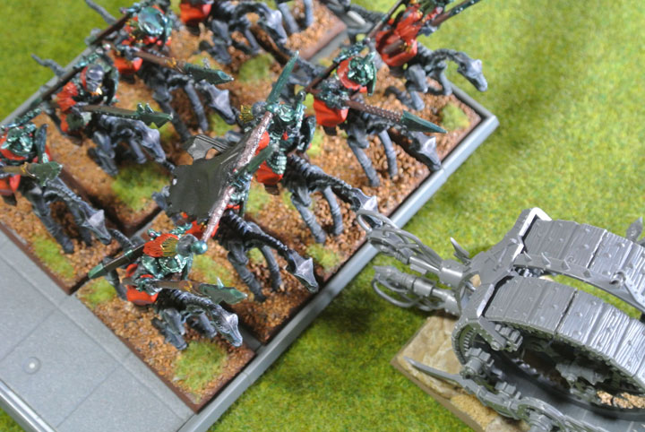今回ケイオスウォーリアー20体×3部隊というマローダー抜きの編成を初めてやってみた(7版でもやっていなかった!)のですが、粉砕されるかと思いきや、意外と保ってくれた。大体、フレイル装備のマローダー30体と同じかそれ以上の活躍をしてくれました。やっぱりケイオスアーマーは堅い。