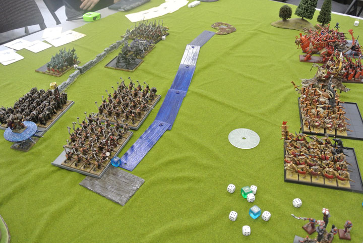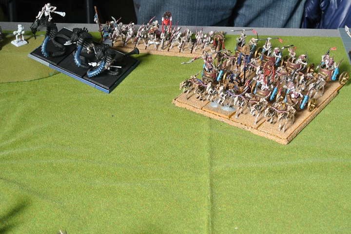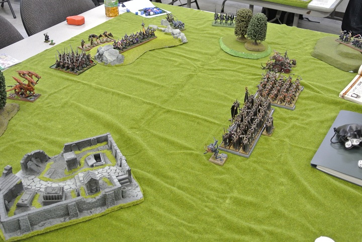 コールドワン・キャバルリーがその機動力を生かし、共同墓地の左舷から渾沌の軍勢と墳墓の王の連合軍の本隊へ向かう。だがそれを許すほど、変化神は寛大ではない。ウォースフィンクスのブレスによってコールドワン・キャバルリーを焼き払い、そのままコールドワン・キャバルリーに向けてウォースフィンクスを進めた。