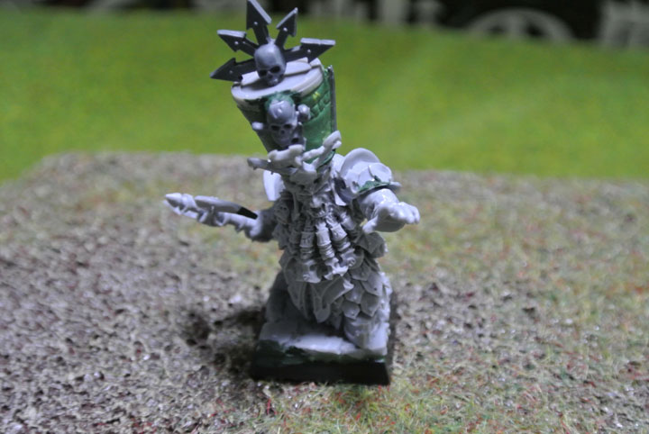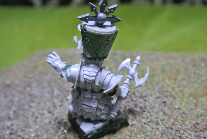 頭部はディスク騎乗のティーンチロードの頭部を使っており、その頭部が他のWoC系の頭部とは違う変則的な形をしていたので、メタルをナイフで削ってからグリーンスタッフでモールドを追加しました。