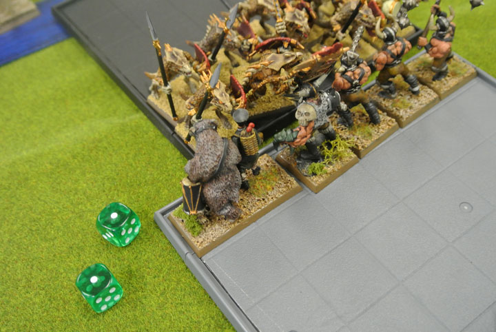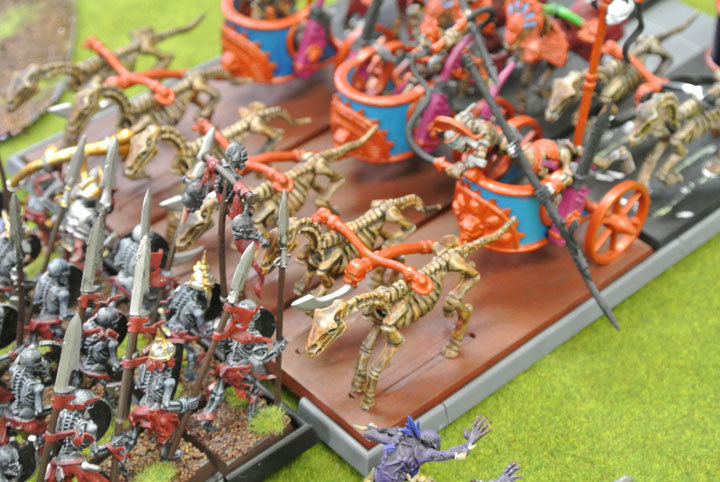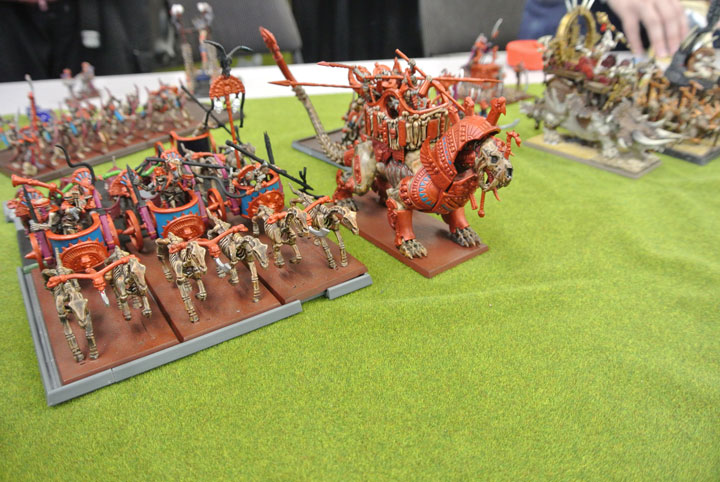 ウォースフィンクスがコールドワン・キャバルリーに向けて襲いかかる。先ほどの一件でトゥームプリンス勢を束縛していた魔術が乱れ、ウォースフィンクス本来の力が発揮された。コールドワン・キャバルリーを蹴散らし、縦横無尽に暴れ回る。魔術による束縛とそれに抵抗するトゥームプリンスの強靱な精神。相克する二つがせめぎ合い、トゥームプリンスの配下達は徐々に統率力を失い暴走し始めた。