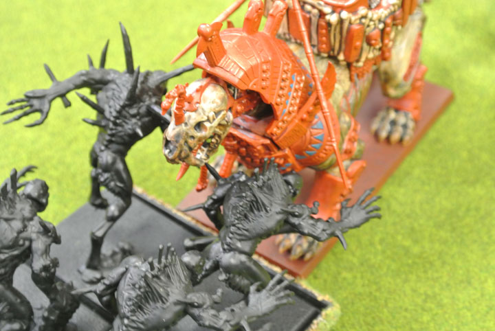 実はこのバトル、トゥームキング側のリッチー・ハイプリーストがやられた所でWoC&トゥームキングの連合軍の投了が確定していたのですが、トカゲ(北)さんにお願いして最後にイーサンとのバトルをやらせてもらいました。イーサン殆ど出番なかったので・・・・・・無事生還したからよかったけど・・・