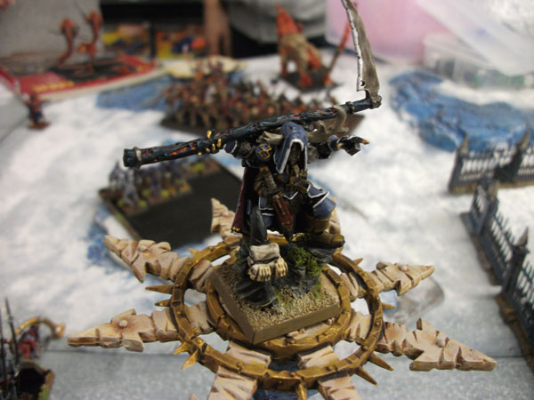 正直、サマンスレイヴの復讐相手を作るのはゲームとしてはどうなのか(ただでさえ、我が軍ではガルラーク先生とヘルキャノンとの間に非常に深い溝があるってのに)と思っていたのですが、ポイント的にソーサラーロードとディーモンプリンスが同時に戦場に存在するというシチュエーションはそうそうないと思うので、作ってしまいました。まあ、両方入れられるような大規模戦で「お、お前はあの時の・・・・・・」「くはははは、ようやく思い出したようだな魔術師よ!」みたいな展開になってゲームそっちのけで内輪もめしていても、それはそれでネタ的に美味しいかな、と思っています。