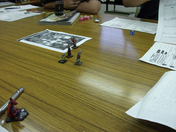 シナリオ進行中、常に笑いが絶えず和やかな雰囲気で進んでいきました。今回はマーカーをウォーハンマーのミニチュアで代用したのですが、専用に作ってみても面白いかも。