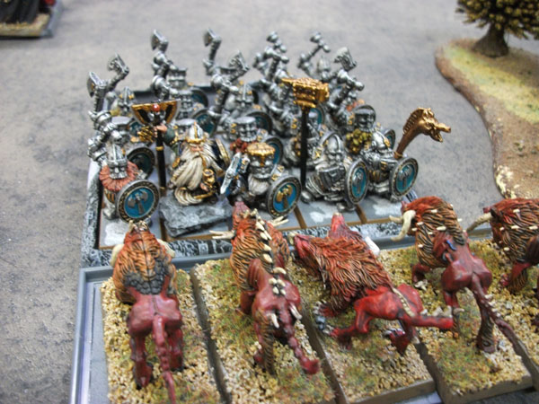 2戦目はベテラン趣味人の方のドワーフと1000pバトル。前回ハイエルフとのバトルでバランスの取れたロスターが組めたので、今回もそれを使って行いました。ちゃんとケイオスオウガもいるぜ。